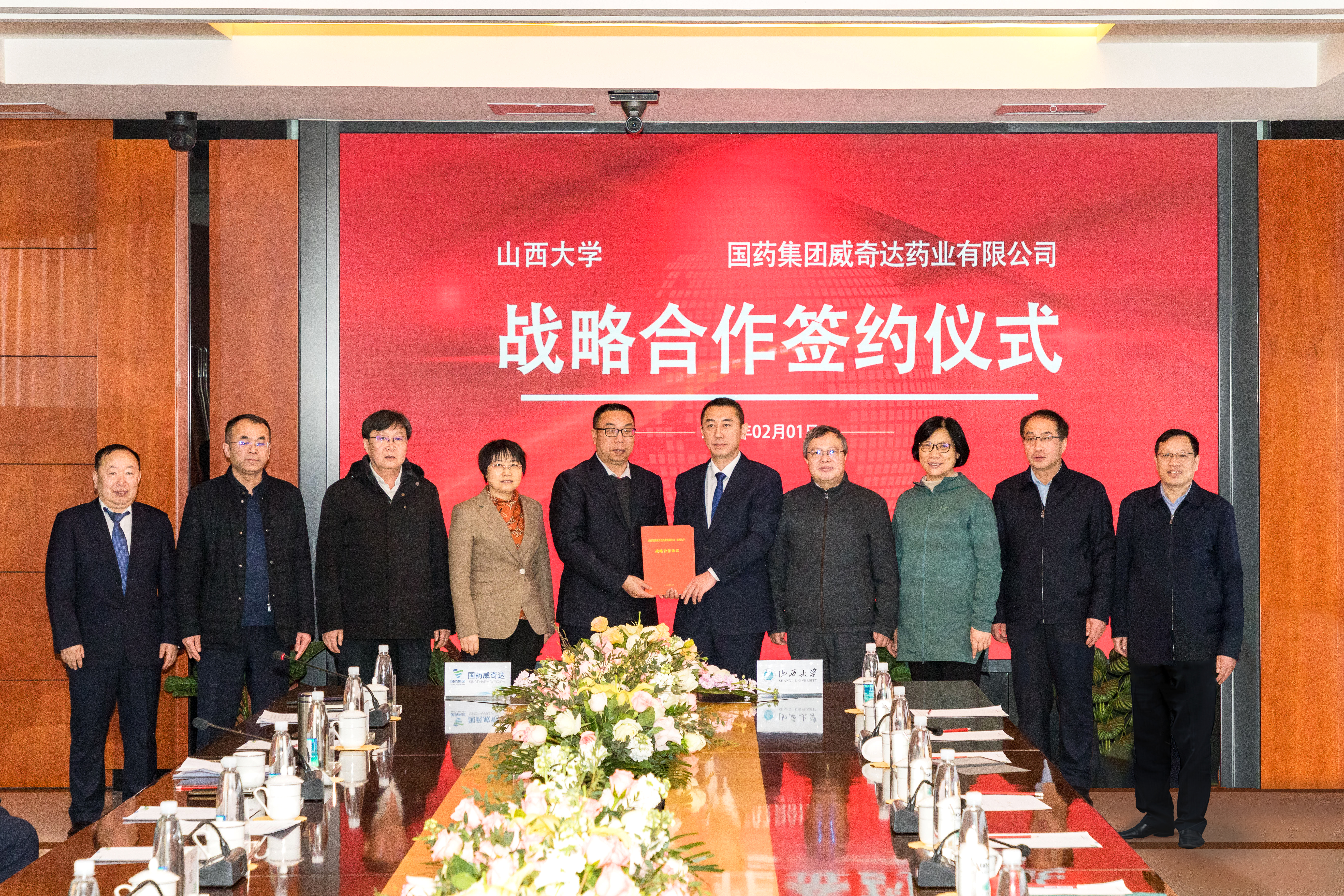 2月1日,国药威奇达与山西大学战略合作签约仪式在国药威奇达举行。山西大学党委书记王仰麟、大同市政府副秘书长曹晖、大同经济技术开发区管委会副主任王华一、大同市工信局副局长苗泽峰、国药威奇达副总经理吕碧英出席签约仪式。山西大学研究生院院长杨恒权与国药威奇达总工程师、研究中心总经理(兼)常华代表双方签署战略合作协议。