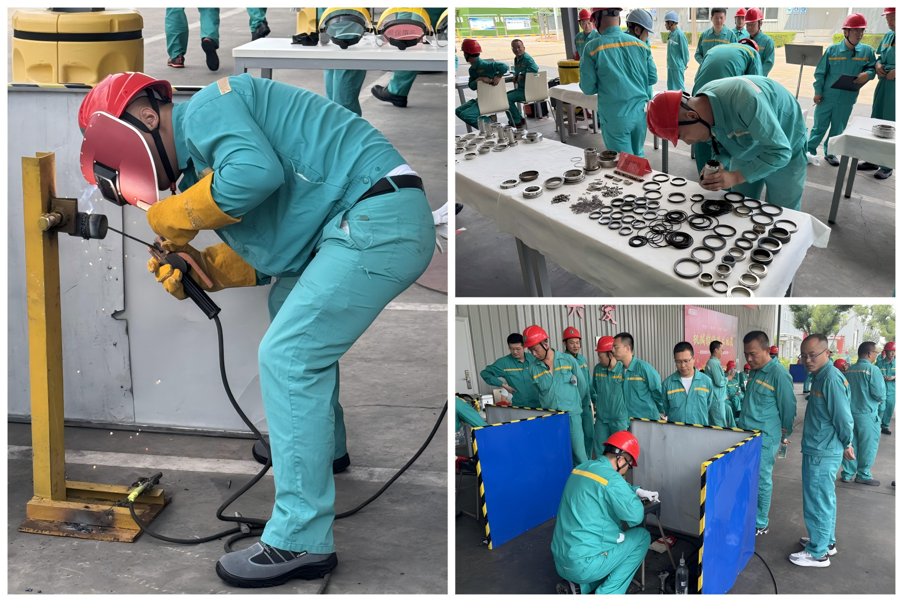 机械维修技术比武大赛现场焊花飞溅、气氛火热。焊接专业选手精准把控焊接节奏,两遍焊接工序尽显扎实功底。气割专业选手以钢板为“画布”,参照等边三角形样板,切割出匹配形状,从切割精度到形状实现精确还原;机封组选手默契配合,快速识别机封规格、规范组装,双人默契配合,展现对设备结构的熟练掌握;钻孔攻丝专业选手在厚钢板上进行手电钻钻孔与攻丝连贯作业,尽显“稳、准、快”操作实力。